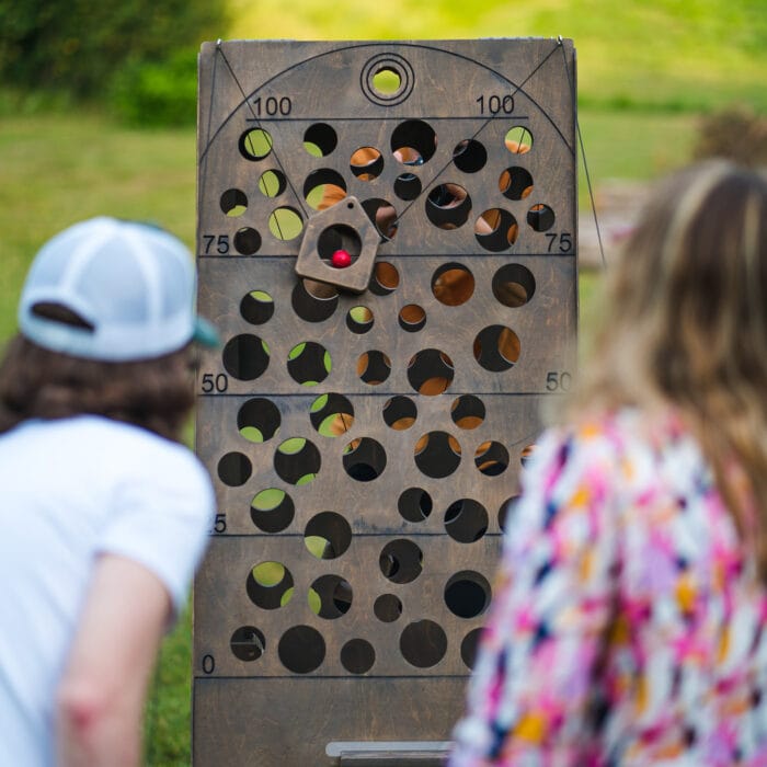 Praktiškai geriausiai veikia ne vienas „didysis” žaidimas, o subalansuota lauko pramogų zona su skirtingais tipais: vienas taiklumo, vienas azartiškas / reakcijos, vienas loginis ar strateginis ir dar vienas toks, kurį būtų smagu stebėti. Kai turite 4-5 stoteles, žmonės natūraliai rotuoja, susimaišo ir kiekvienas randa savo tempą – todėl šventėje nelieka „tik stebėtojų” ir žaidimai tampa organiška vakaro dalimi.