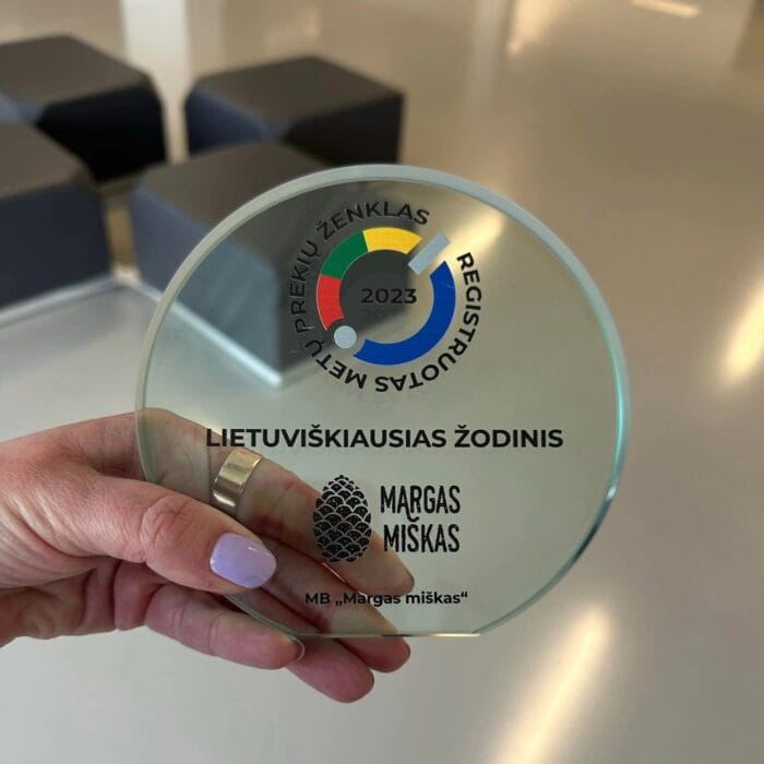 Todėl buvo ypatingai malonu gauti žinią, kad „Margas miškas” Lietuvos valstybinio patentų biuro buvo įvertintas, kaip „Lietuviškiausias žodinis 2023 registruotas prekių ženklas”, o papildomai sulaukėme įvertinimo ir už prekės ženklo dizainą. Be didelių fanfarų – tiesiog gražus momentas. Toks, kurį norisi užfiksuoti kaip mažą kelio žymę: einam teisinga kryptim, ir tai matosi ne tik mums patiems.