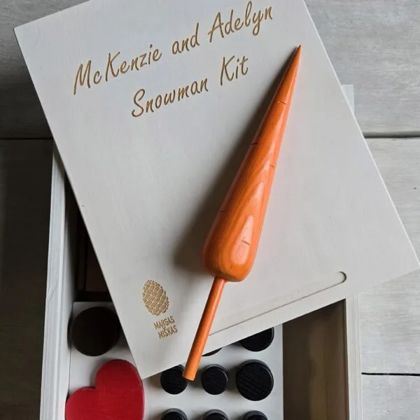 Taipogi pagaminome ir didesnį kalėdinį rinkinį medinėje dėžutėje su Sniego senio medinėmis detalėmis, kur kartu supakuotas ir mūsų kalėdinis stalo žaidimas „Kryžiukai nuliukai MINI”.